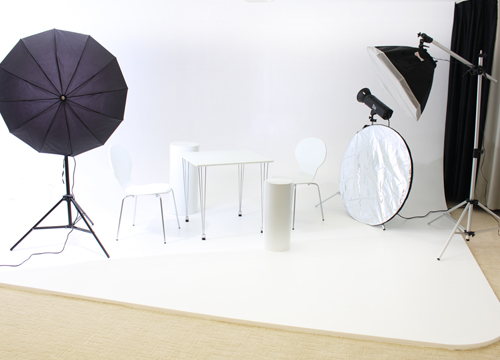 最長幅7mの巨大アールホリゾントなら家具や備品等を配置しての撮影も可能です。